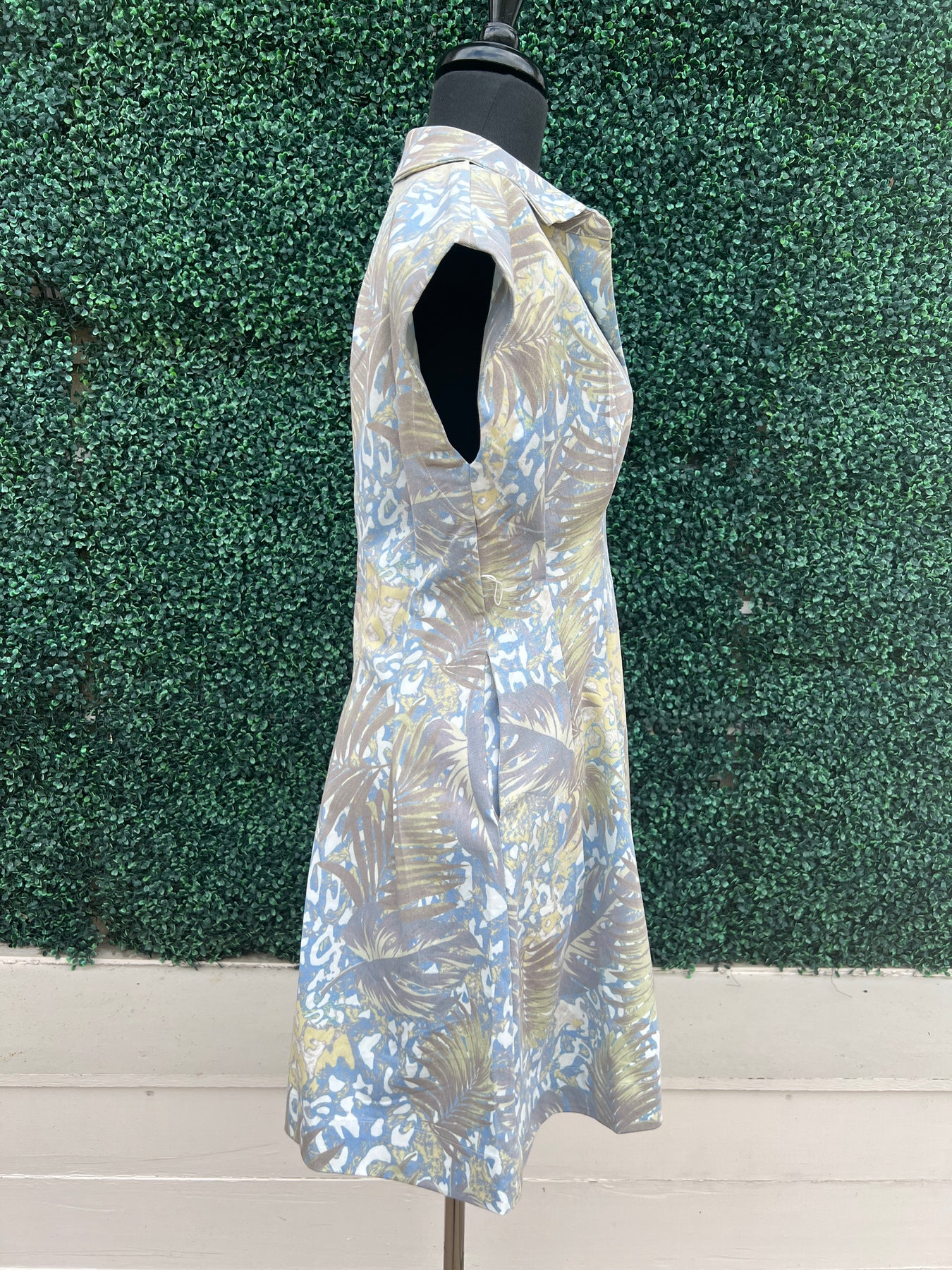 Slip into effortless resort style with this fit-and-flare palm print dress that looks stunning with or without the included sash belt. Cinched at the waist for a flattering silhouette, it features practical pockets and charming cap sleeves that add just the right amount of drama. Whether you're lounging poolside or heading to dinner, this playful piece keeps you looking polished and put-together all day long.