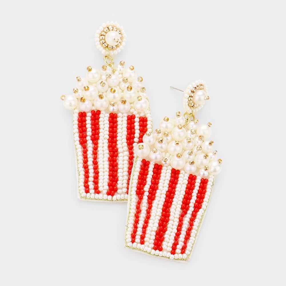 • Felt Back Pearl Seed Beaded Popcorn Dangle Earrings