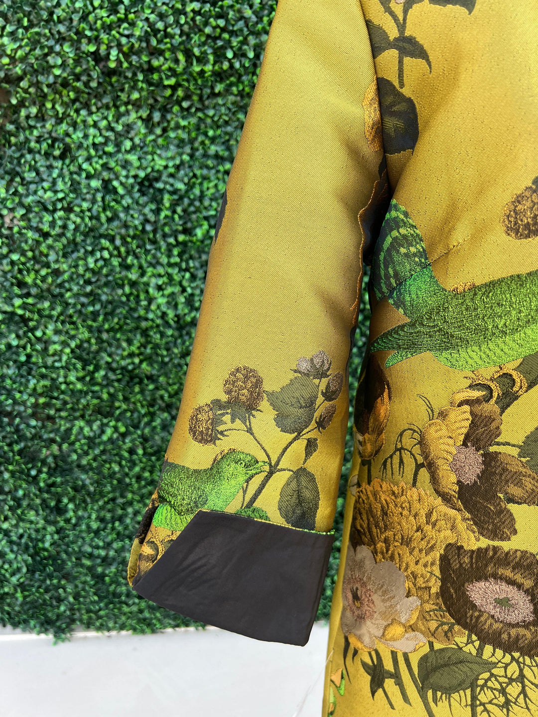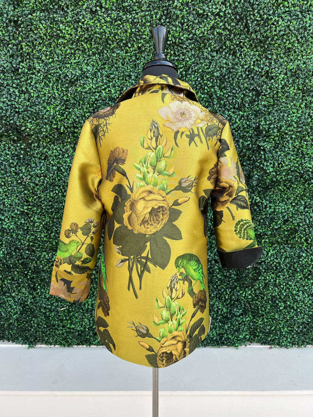 This Bird Floral Blazer Jacket by Grace Chuang is the ideal pick-me-up for any wardrobe. Stand out from the crowd with its unique color, and let the pattern of roses, branches, and birds be a conversation-starter. Fly high and soar with this one-of-a-kind blazer!
