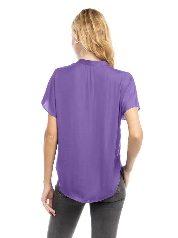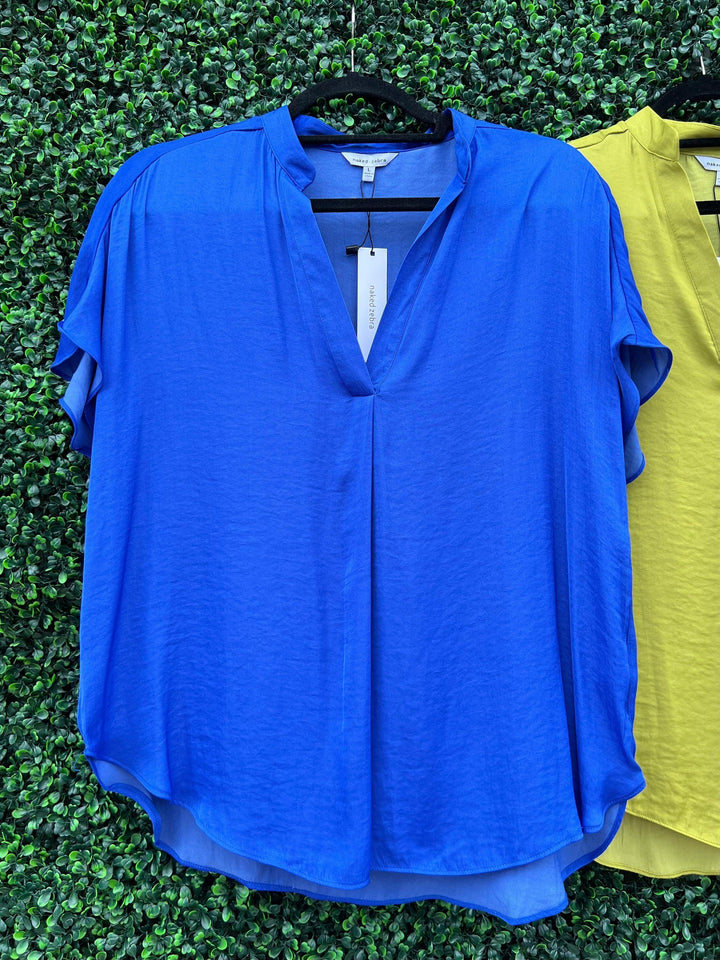 Drop Shoulder Notch V Neck Blouse. This top is made out of a lightweight silky fabric without the hefty silk pricetag!